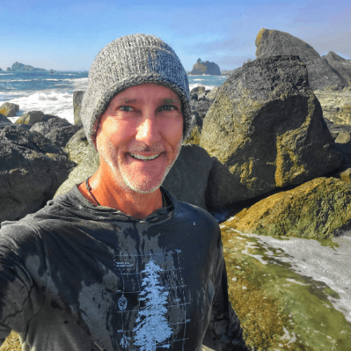 My spiritual practice immerses my soul in the wild, honoring the mystical, the sacred temple of the wild, infused with natural energies. In this photo I am 'kissed' by a wave hiking the Oregon Coast
