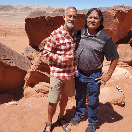 Standing with Hopi Elder, 2nd Mesa, gifting me ceremonial feathers, after my 3rd Hopi Initiation. Gifted at a Sacred Hopi ‘glyph’ site, holding ancient energy, a portal between worlds, known only by the Hopi